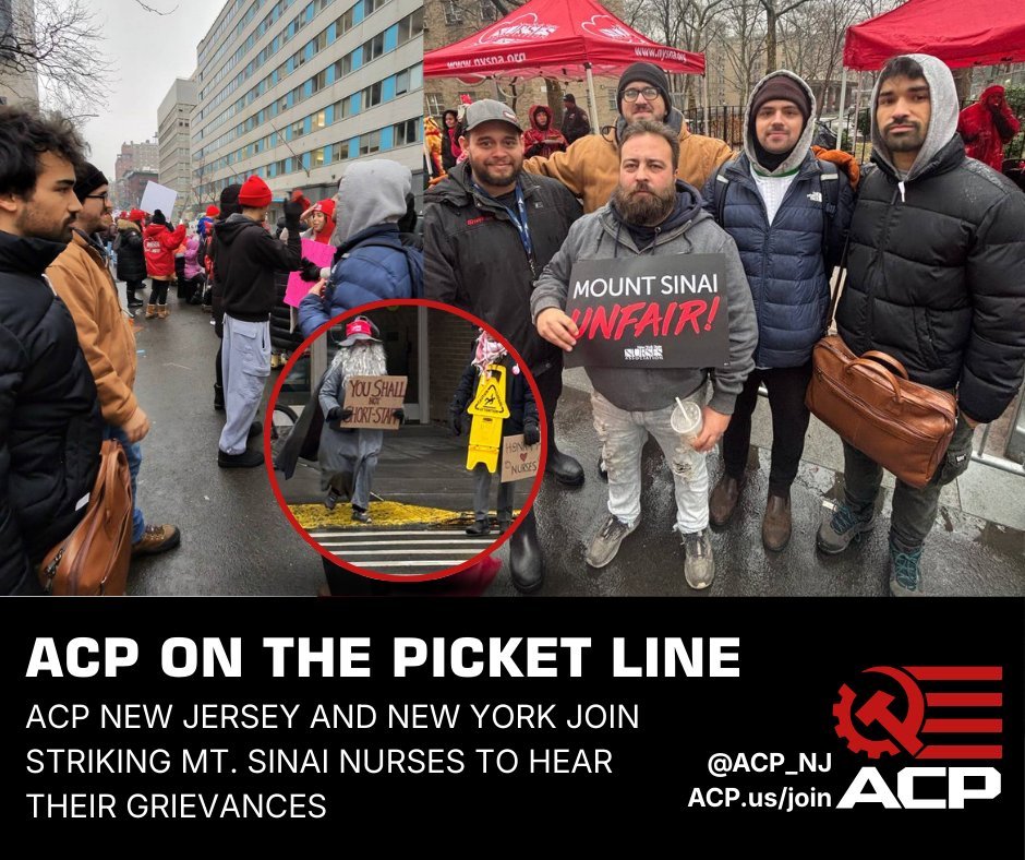 On January 18, cadre from ACP NJ and @ACP_NewYork joined striking nurses at Mt. Sinai Hospital, in the largest nursing strike in NYC history. We talked to workers to collect their grievances, motivating them in their fight and giving them information about ACP's labor activism.